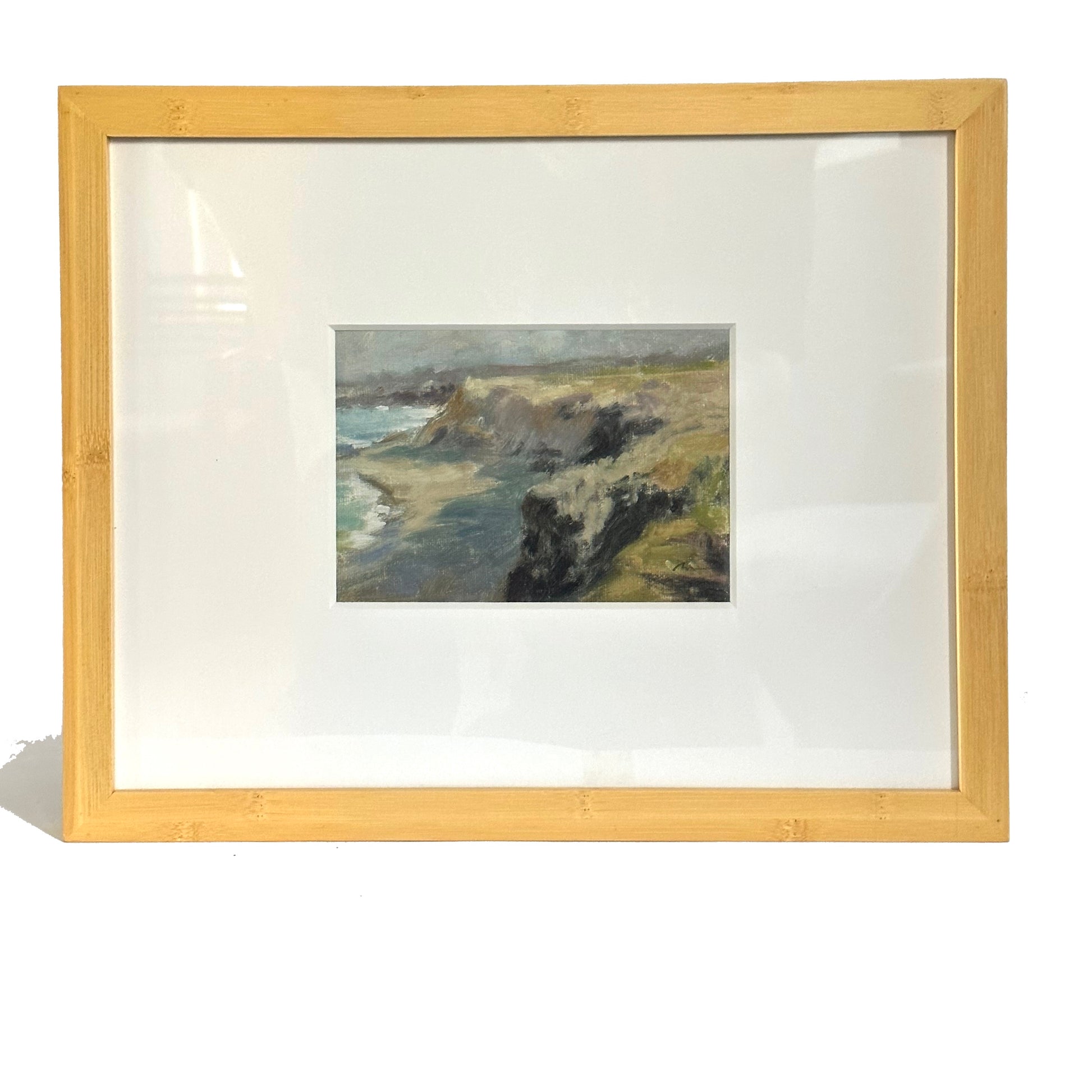 Original oil painting on canvas by New York artist Steven Miglio. Framed in blond wood. 15.5" x 12.5" framed.