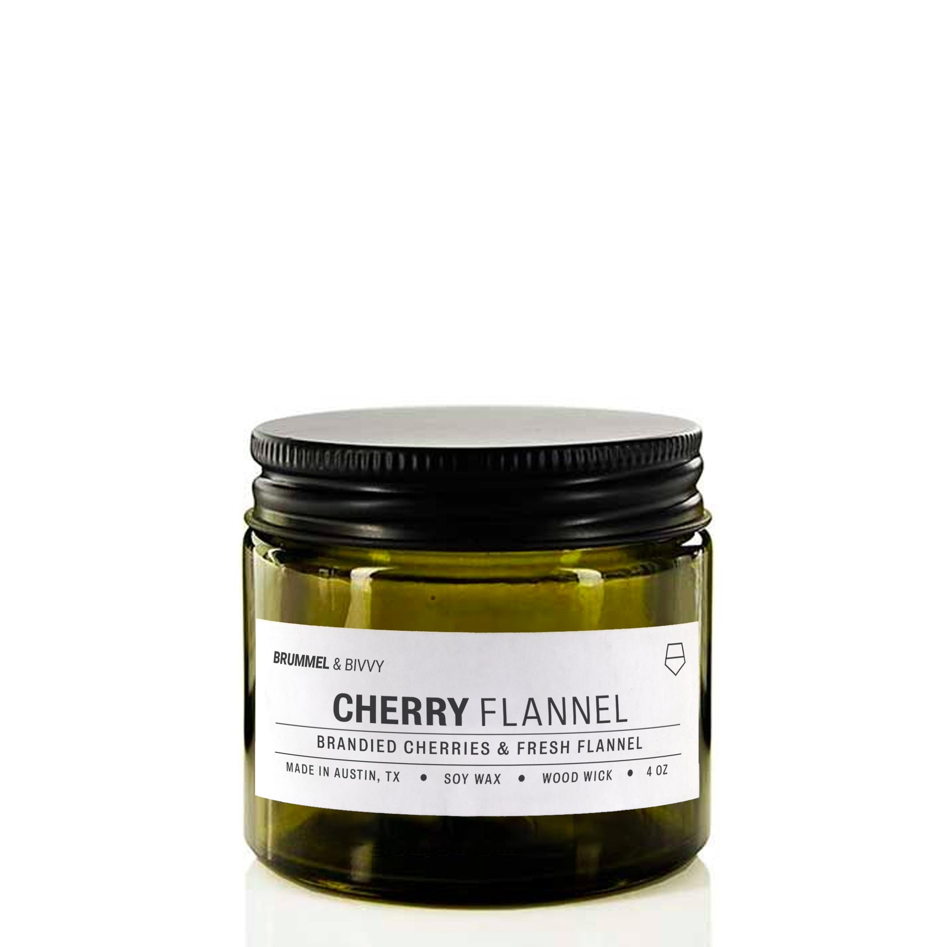 Scented candle in covered vessel. "Smoking Den", "Cabin Porch", "Forest Cove" or "Cherry Flannel"