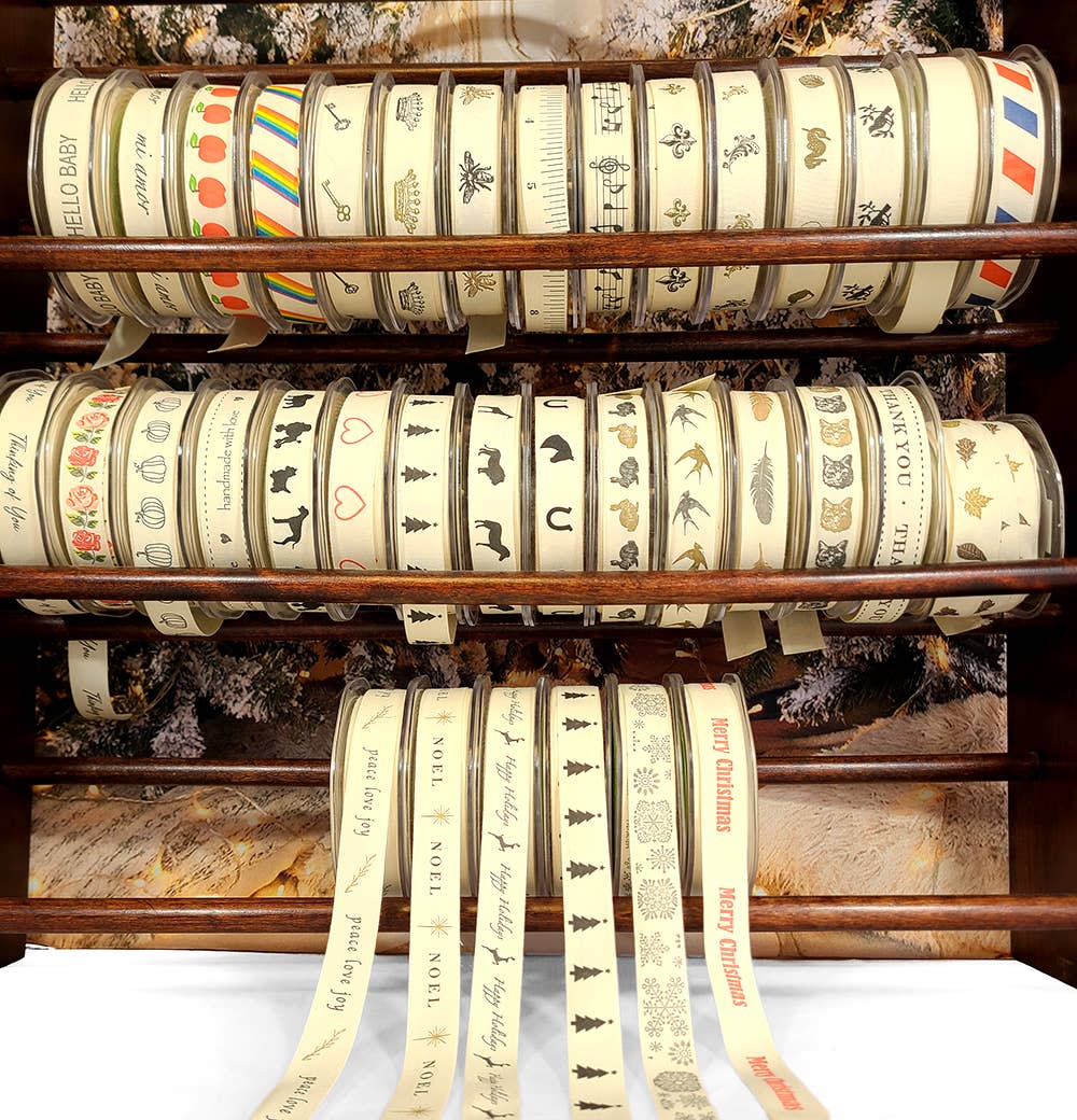 This 3/4 inch by 30 yard ivory canvas ribbon is printed with a repeating pattern. This ribbon makes a great addition to a personalized gift or gift bags, on floral arrangements, or on any store gift wrap.