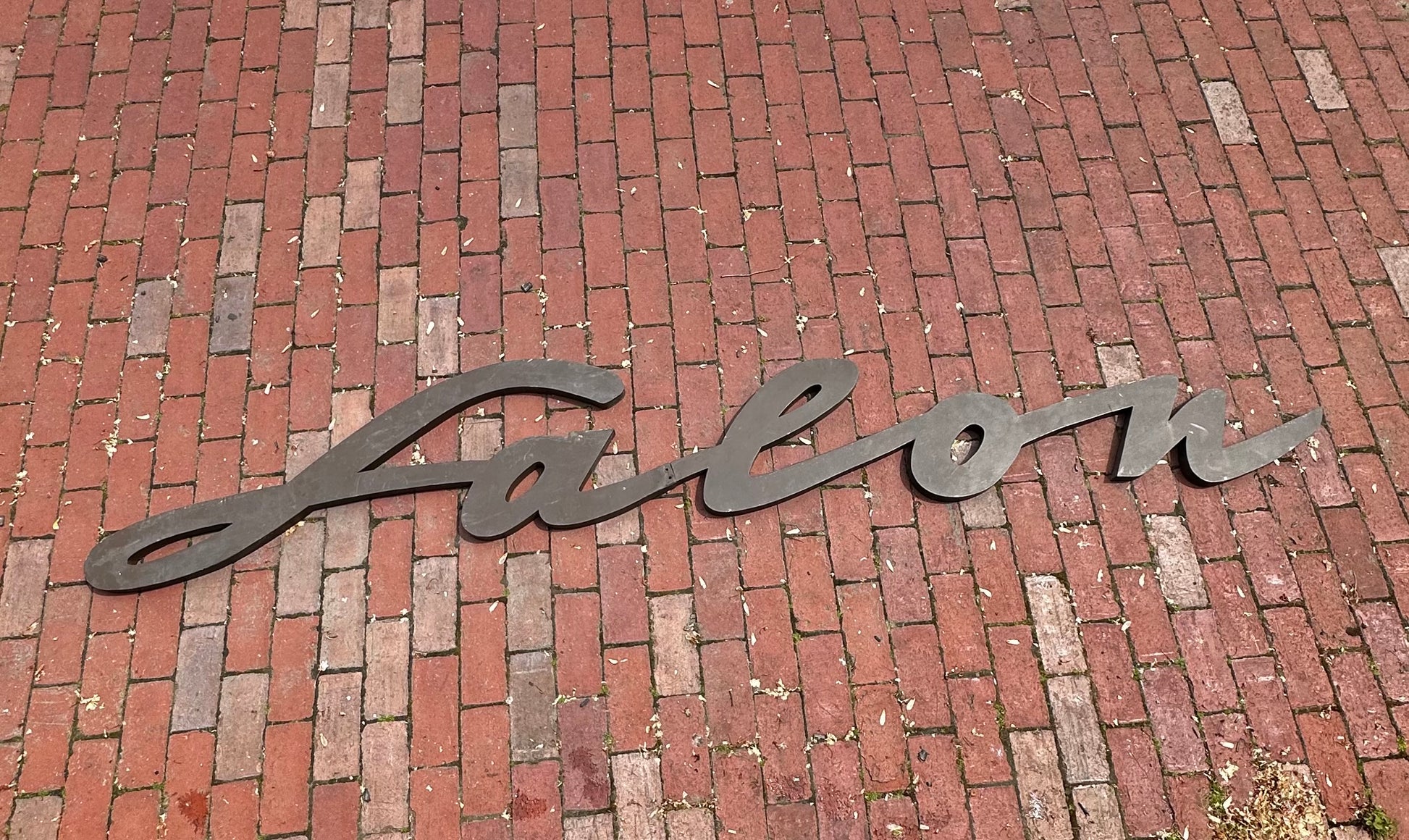 Formed metal, hollow. 99” x 16” x 2”, 2 pieces Hollow back would easily accommodate LED strip light, for a retro backlight effect.